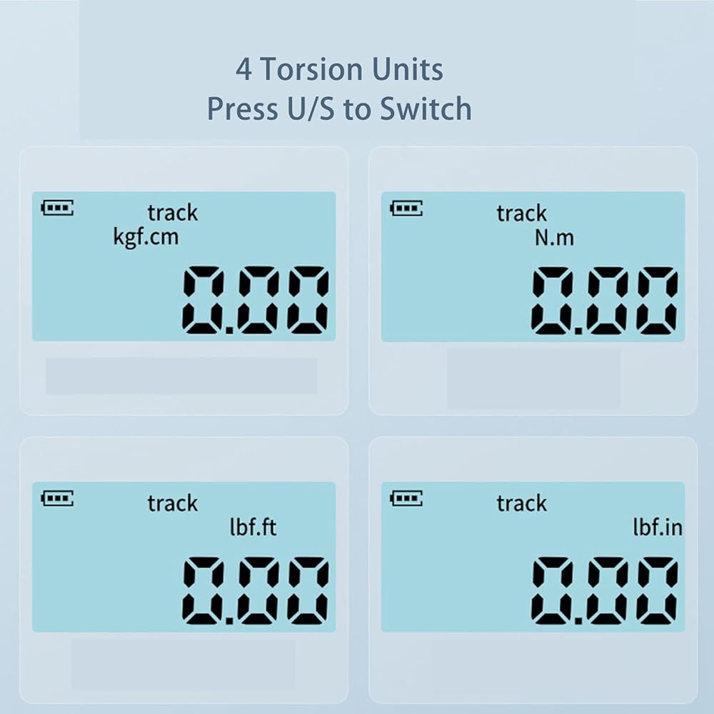 [HIGH VISIBILITY LARGE SCREEN] The digital torsion gauge features a crystal clear large screen with an adjustable backlight function. Simply hold down the power and + keys simultaneously to toggle the backlight on or off ensuring optimal visibility in any lighting condition whether you are working in a dimly lit garage or under bright sunlight.