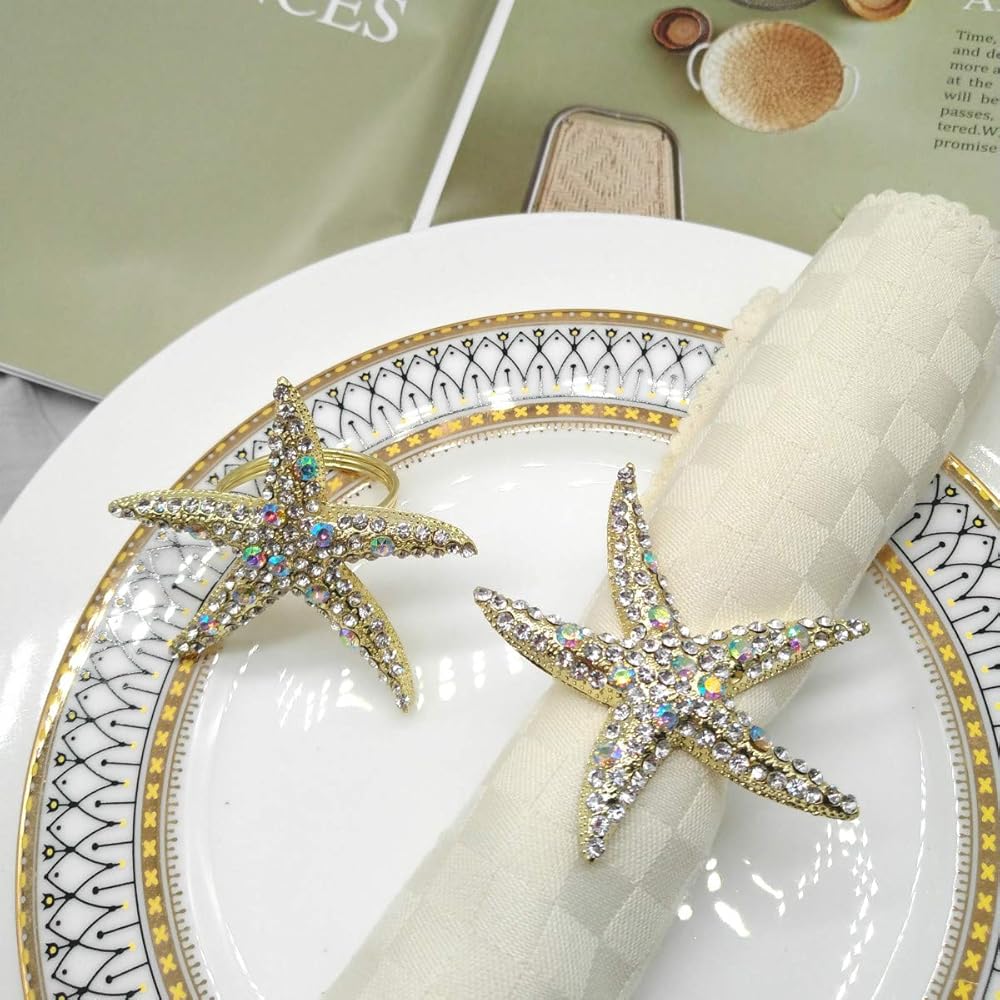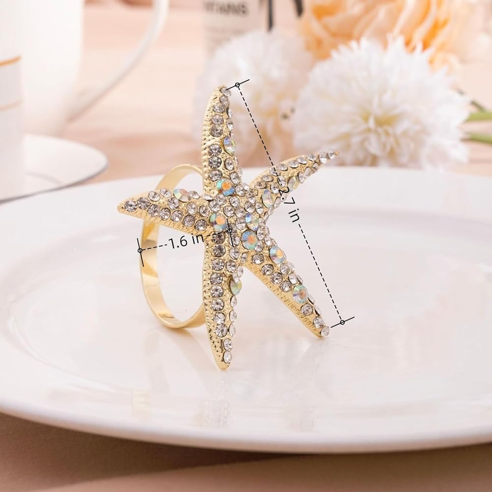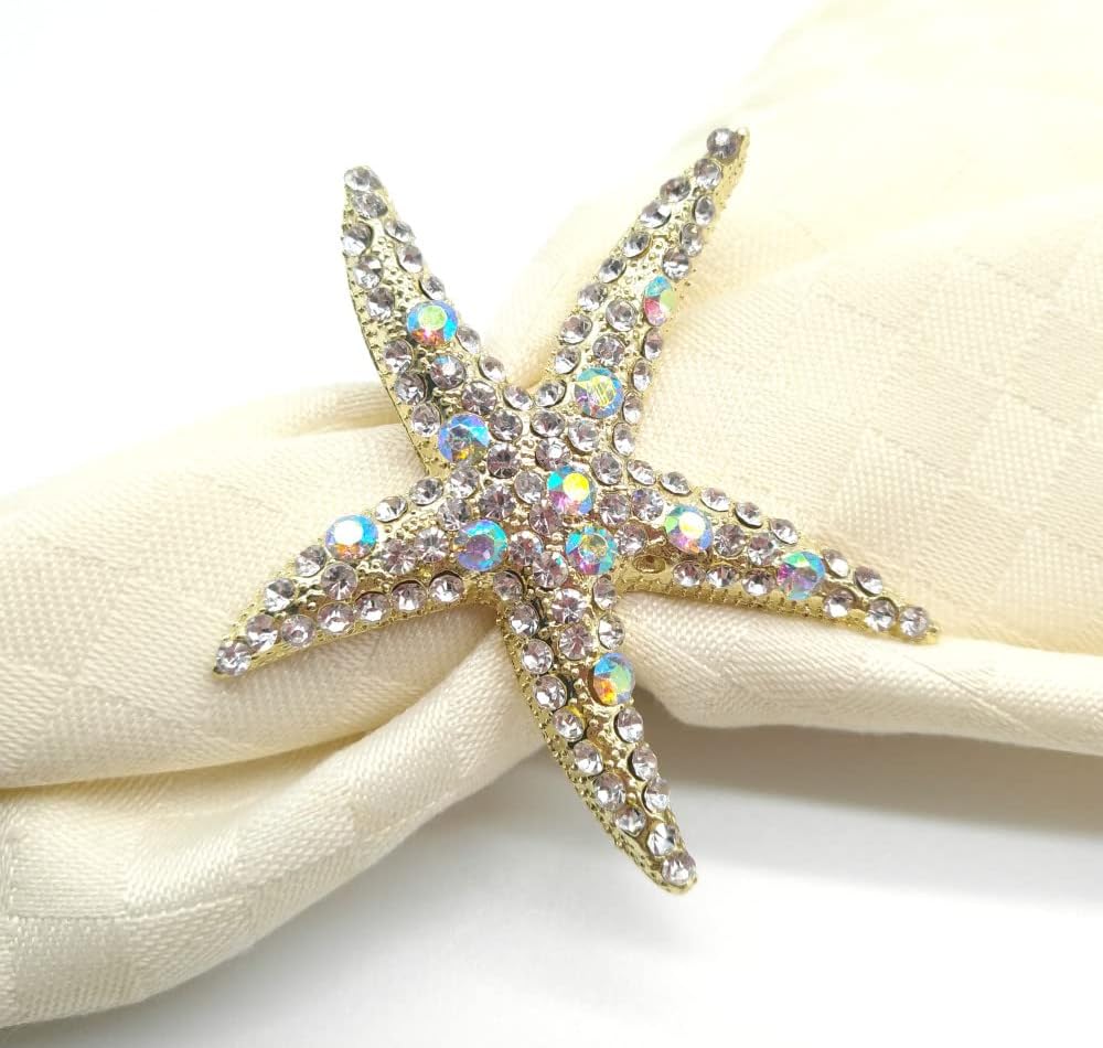• Package Included: Set of 12 starfish napkin rings, beautifully made of alloy metal and rhinestone, heavy duty, classy, bling and snap-free.