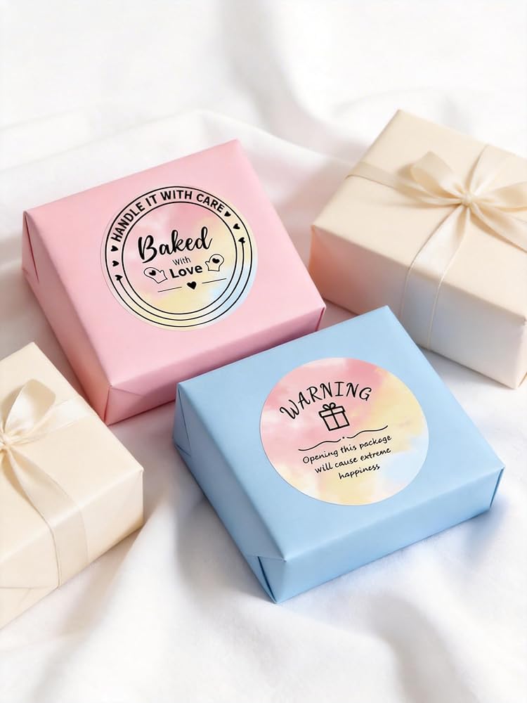 【Thermal Stickers for Aesthetic Branding】Featuring a soft pink-yellow-blue watercolor gradient, our thermal stickers stand out from plain solid labels, adding a decorative, artistic touch to your packages and items. Elevates your product presentation.
