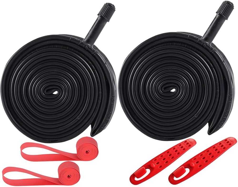 【حجم أنبوب إطارات الدراجة】عبوة من قطعتين من الأنبوب الداخلي للدراجة مقاس 20 بوصة × 1.90-2.125 مع 2 بطانة للدراجة ورافعتين للإطارات، صمام شريدر، 33 مم مع غطاء