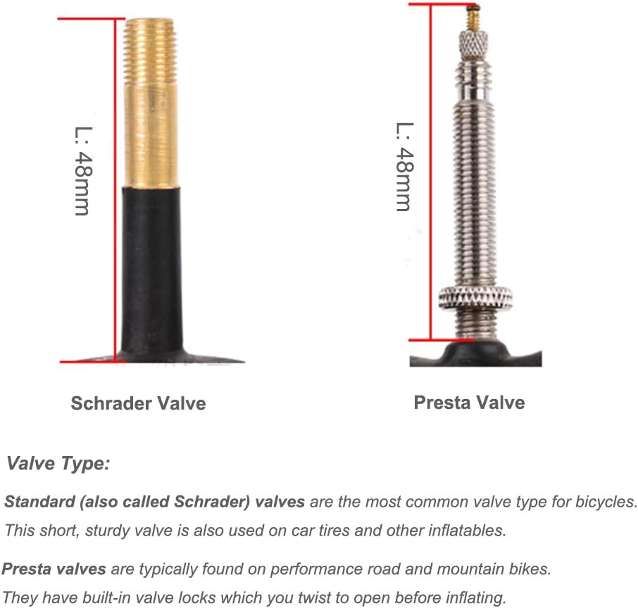 【شراء خالٍ من المخاطر】نقدم لك إرجاعًا مجانيًا إذا لم تكن راضيًا عن المنتج. يرجى التحقق من علامات الجدار الجانبية على إطارك لتحديد حجم الأنبوب الذي يناسب إطارك. ويرجى التحقق من صمام الأنبوب الداخلي لدراجتك القديمة لاختيار صمام بريستا أو شريدر