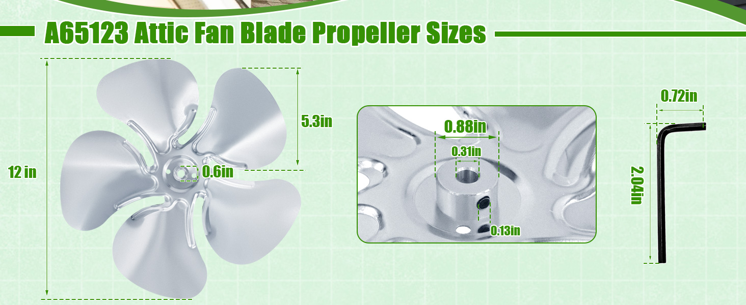 تذكير دافئ: يرجى فهم مخطط المقاسات الثاني بالتفصيل قبل الشراء لتجنب شراء المنتج الخاطئ بسبب مشكلات الحجم. مقاسات شفرة مروحة العلية A65123: التجويف (بوصة): 5/16، عدد الشفرات: 5، القطر (بوصة): 12، درجة (درجة): 23