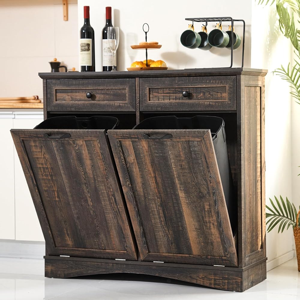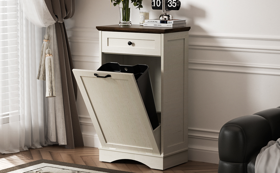 مساحة التوفير: خزانة القمامة القابلة للإمالة هذه مزودة بدرج وباب مائل لمساحة تخزين كبيرة، وتوفر الأدراج مساحة تخزين لأشتات صغيرة، وتحمي العناصر من الغبار أو الرطوبة، ويمكن للجزء العلوي أن يتحمل الأطباق وأجهزة الميكروويف وحتى ماكينة القهوة. الحفاظ على المساحة الخاصة بك منظمة ونظيفة.