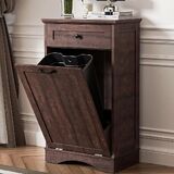 قوية ومتينة: تبلغ أبعاد خزانة القمامة القابلة للإمالة 21 بوصة طولًا × 13.58 بوصة عرضًا × 38.58 بوصة ارتفاعًا. إنها تتناسب تمامًا مع سلة المهملات سعة 13 جالونًا (لا يمكن تضمين سلة المهملات). الخزانة مستقرة بما يكفي لحمل الغسيل أو القمامة. يضمن البناء القوي متانتها وإطالة عمرها الافتراضي.