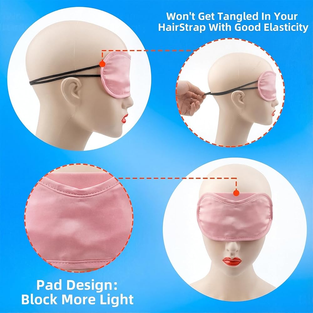 Soft Skin-Friendly Material: The eye mask is made of soft and Smooth polyester-cotton blend feels gentle on eyes — no irritation from rubbing; breathable fabric eye covers for sleeping prevents overheating (ideal for summer travel or warm party rooms). The eye mask completely block out light, they are comfortable to wear.