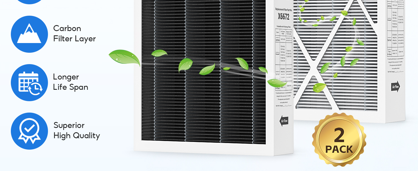 【ترشيح عالي الكفاءة بدرجة MERV 16】: مرشحات استبدال الفرن النظيف الكربوني X6672 16x25x5 MERV 16 مصنوعة من مادة مصفوفة الألياف المطلية بالكربون المنشط بجوز الهند. يمكن للفلتر تصفية 99.99% من الجزيئات المحمولة بالهواء والتي يصل حجمها إلى 0.1 ميكرون بشكل فعال، مما يحسن جودة الهواء في مكانك