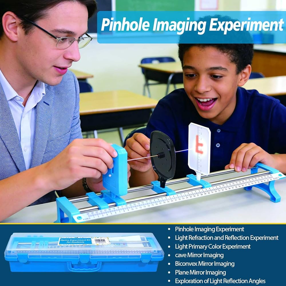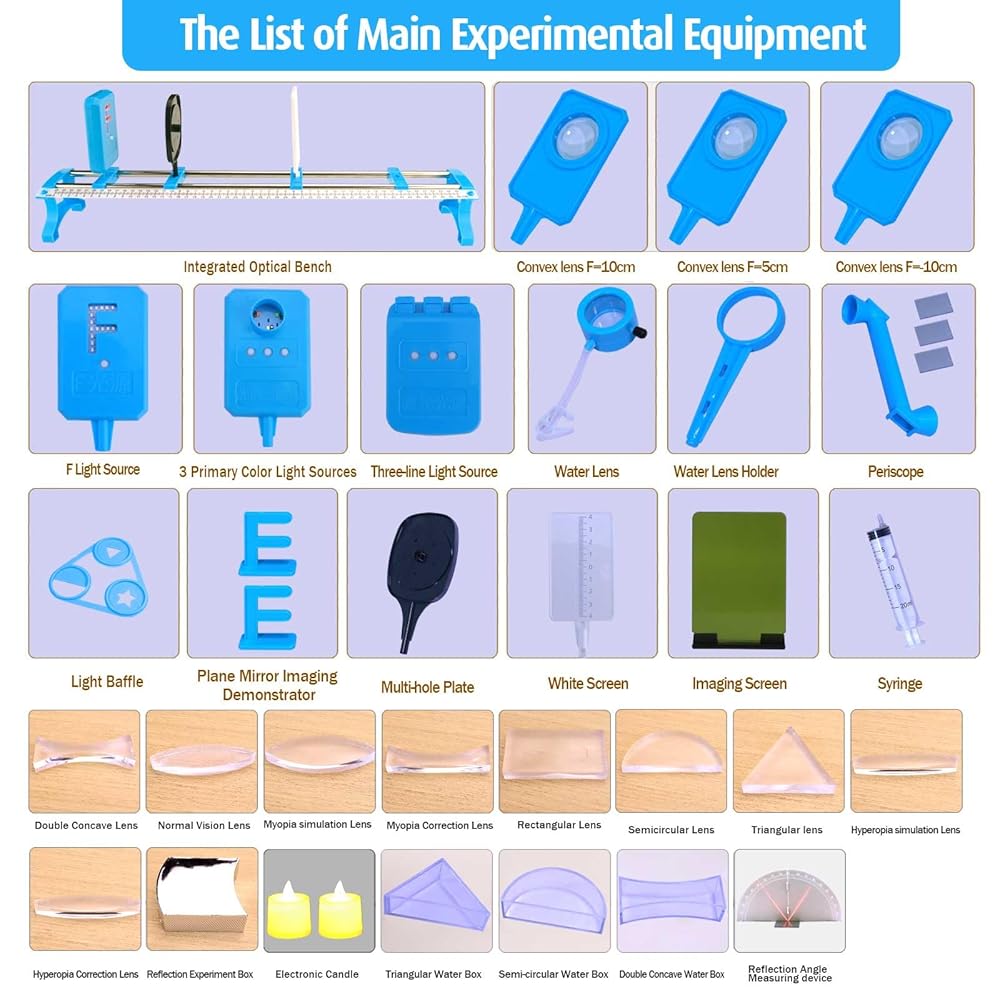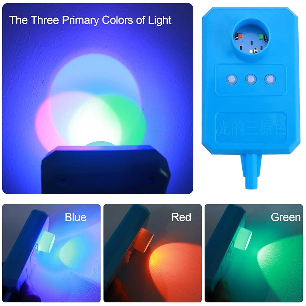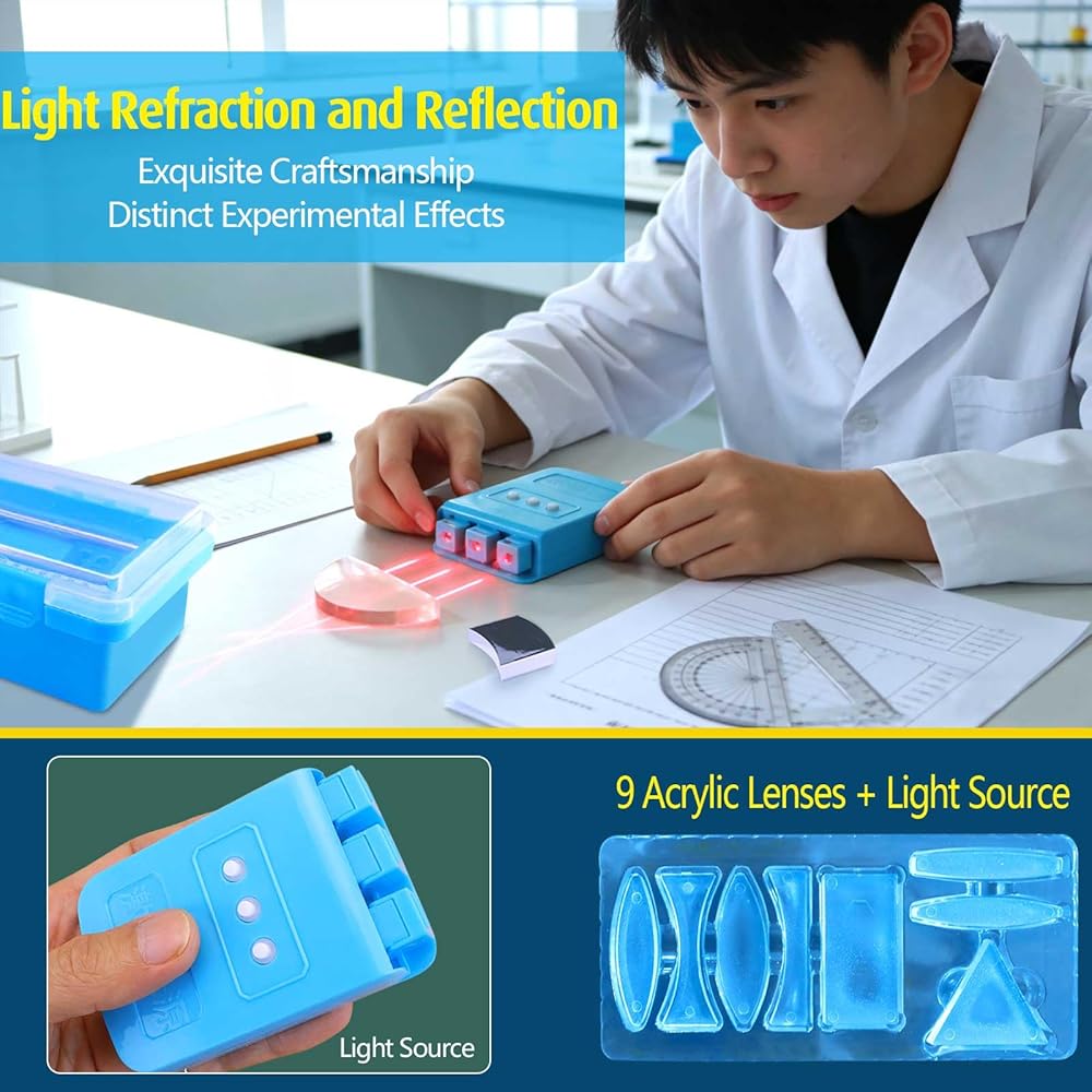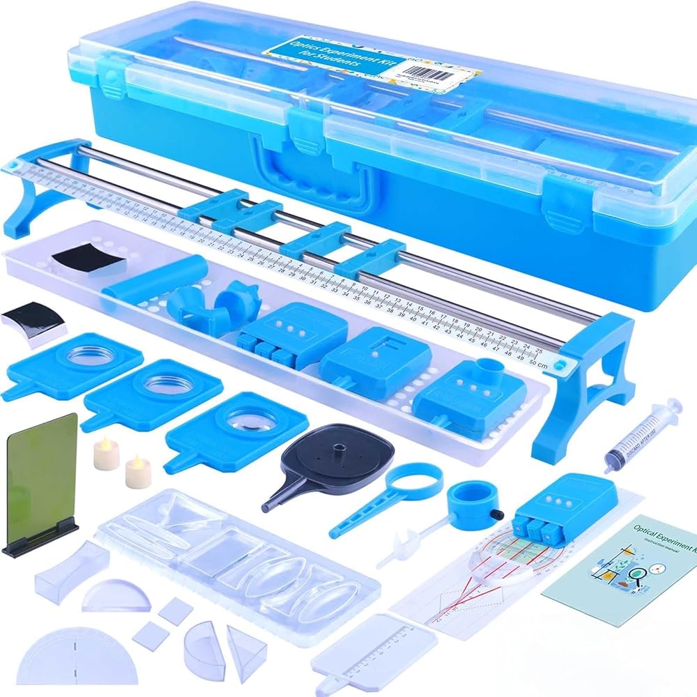 مجموعة تجارب الفيزياء والبصريات، مجموعة فيزياء العلوم والتكنولوجيا والهندسة والرياضيات (STEM) لانكسار/انعكاس الضوء، وعدسة محدبة، وتصوير الثقب واستكشاف الألوان الأساسية للضوء في المدرسة والمنزل، أداة تعليمية عملية