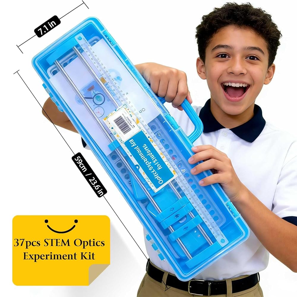 مكونات الكل في واحد: لا توجد مشتريات إضافية لبصريات العلوم والتكنولوجيا والهندسة والرياضيات، تحتوي هذه المجموعة على كل شيء لتجارب بصريات العلوم والتكنولوجيا والهندسة والرياضيات - لا حاجة إلى عمليات شراء إضافية، مثالية لمقدمي تعليم العلوم والتكنولوجيا والهندسة والرياضيات. تشتمل على: مقعد بصري متكامل، بطاقة مقلة العين، لوحة متعددة الفتحات، عدسة/حامل مائي، مصادر ضوء ثلاثية الخطوط/ثلاثة ألوان أساسية (تجارب نظرية الألوان STEM)، عدسات (F10cm/F5cm محدبة، F-10cm مقعرة)، مصدر ضوء على شكل F، درع، شاشة تصوير، 2 شمعتين إلكترونيتين، 3 مرايا مستوية (أنشطة STEM العاكسة)، المنظار، صناديق المياه، عدسات الرؤية، شاشة بيضاء، صندوق الانعكاس، مقياس، حقنة، دليل محاذاة STEM، وصندوق تخزين (بدون بطاريات).
