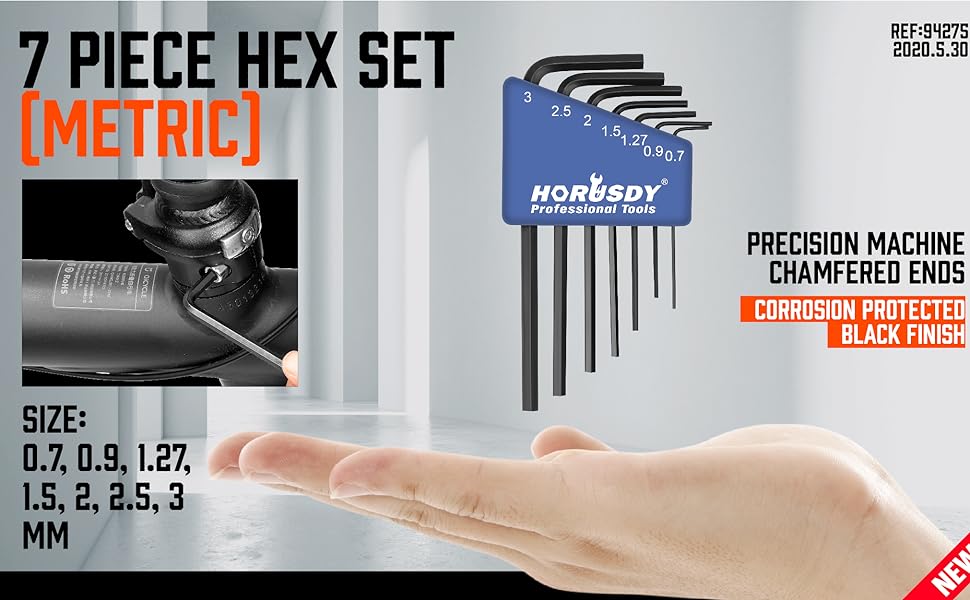 7 قطع متري من مفتاح ألين سداسي L (الأزرق) الحجم: 0.7 مم، 0.9 مم، 1.27 مم، 1.5 مم، 2 مم، 2.5 مم، 3 مم.