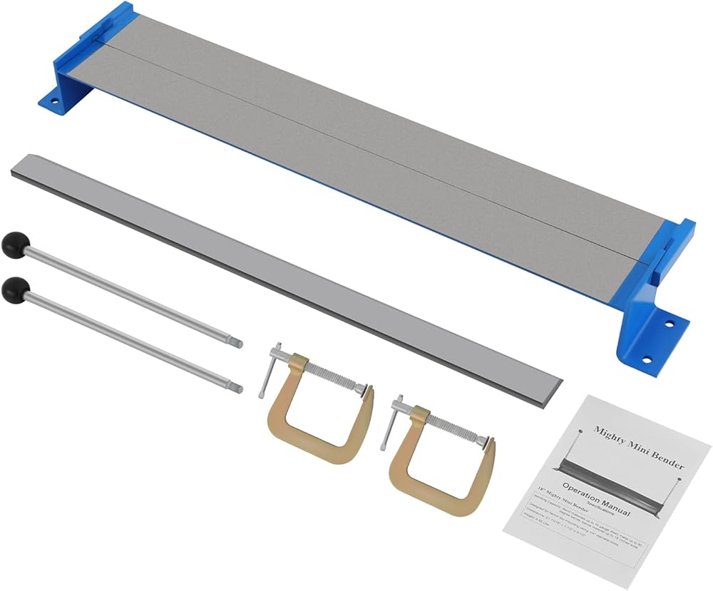 DescriptionThis manual bending machine is made of high-class steel and fine craftsmanship to ensure sturdiness and durability. It can provide a bending angle of 0-90° to achieve the desired bending effect. The carefully designed extended handles and C-shaped clamps offer great convenience for your bending work. Whether used in factories, workshops, or households, it will be your right-hand man.SpecificationColor: BlueStyle: ModernMaterial: Q235 Steel, BakeliteProcess: Painting, PolishingOperation Type: ManualBending Angle: 0-90° Max. Bending Length: 76cm/30inMax. Bending Thickness: 1.2mm/0.05inHandle Length: 30cm/11.81inPackage Size: 90*17*12cm/35.43*6.69*4.72inGross Weight: 15kg/33.07 lbsNet Weight: 14.5kg/31.97 lbsPackage Included1* Manual Bending Machine2* C-shape ClampsNotes1.Please double-check compatibility before purchasing. 2.Please wear protective glove (not included) during operation to improve the safety of use.3.Please allow the slight color difference caused by the shooting light and 1-3cm error due to manual measurement, and make sure you do not mind before you order.