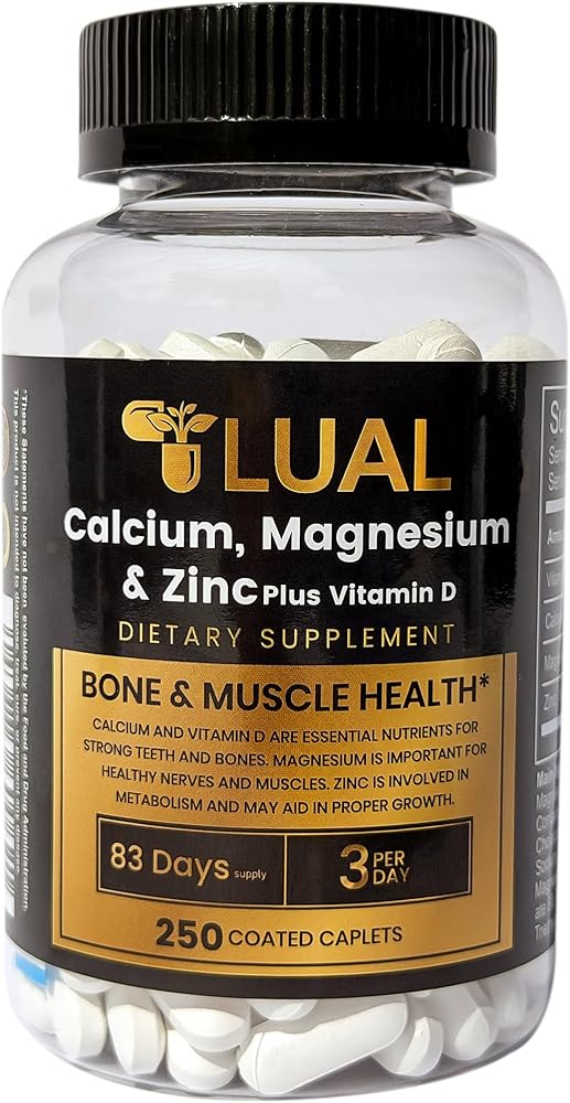 Maintaining strong bones, healthy muscles, and overall mobility becomes increasingly important as part of an active adult lifestyle. LUAL Calcium, Magnesium & Zinc with Vitamin D is thoughtfully formulated to provide essential daily minerals that support bone and muscle health as part of a balanced wellness routine. Each serving delivers a carefully balanced combination of calcium, magnesium, zinc, and vitamin D to help support bone strength, muscle function, and mineral absorption. Calcium plays a key role in maintaining strong bones and teeth, while magnesium supports muscle and nerve function. Zinc contributes to immune health and metabolism, and vitamin D helps support calcium absorption for optimal daily mineral support. Designed for adult daily use, this formula is ideal for individuals looking to stay active and support mobility as they age. With 250 coated caplets per bottle, LUAL provides up to an 83-day supply when taken as directed, making it a convenient and long-lasting addition to your daily routine. LUAL is committed to quality you can trust. This supplement is gluten-free and lactose-free, made without artificial dyes or flavors, and manufactured under strict quality standards. Every bottle is crafted with care to support your wellness goals with confidence and consistency.