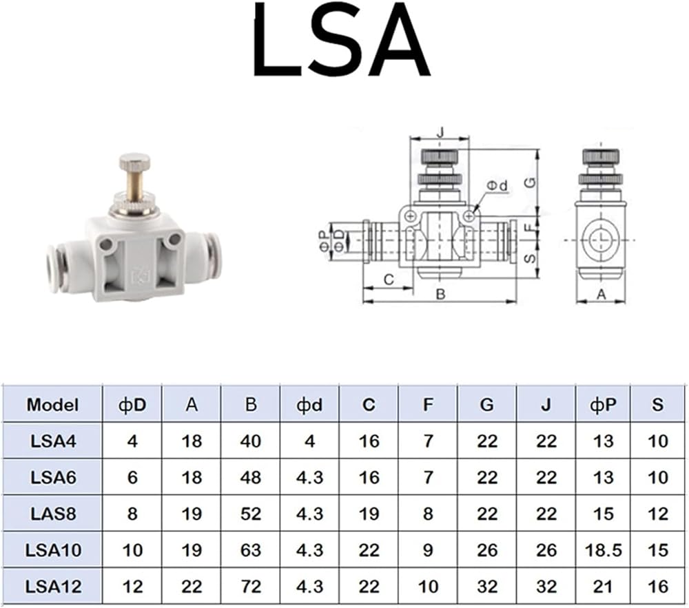 1 قطعة تركيبات هوائية بيضاء خنق قابل للتعديل صمام الأنابيب سريعة LSA-6 LSA-8 4 10 12 متر (LSA10)