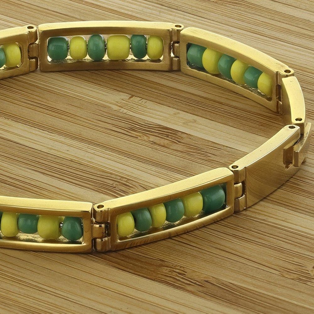 Stainless Steel Green and Yellow Beads Babalawo Amulet Protection Orula Bracelet for Men and Women - Unisex Stylish Good Luck Bracelet Perfect Addition to Jewelry Collection