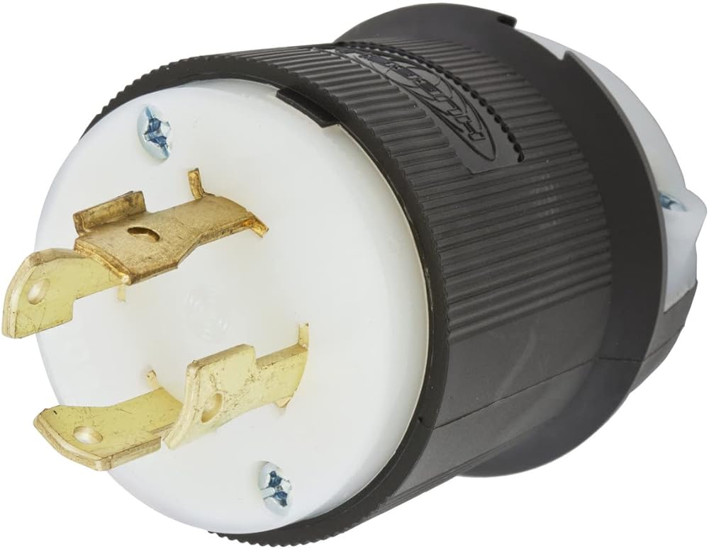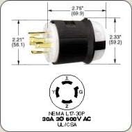 Locking Devices Twist Lock Industrial Male Plug 30A 3-Phase 600VAC 3-Pole 4-Wire Grounding L17-30P Screw Terminal Black and White.