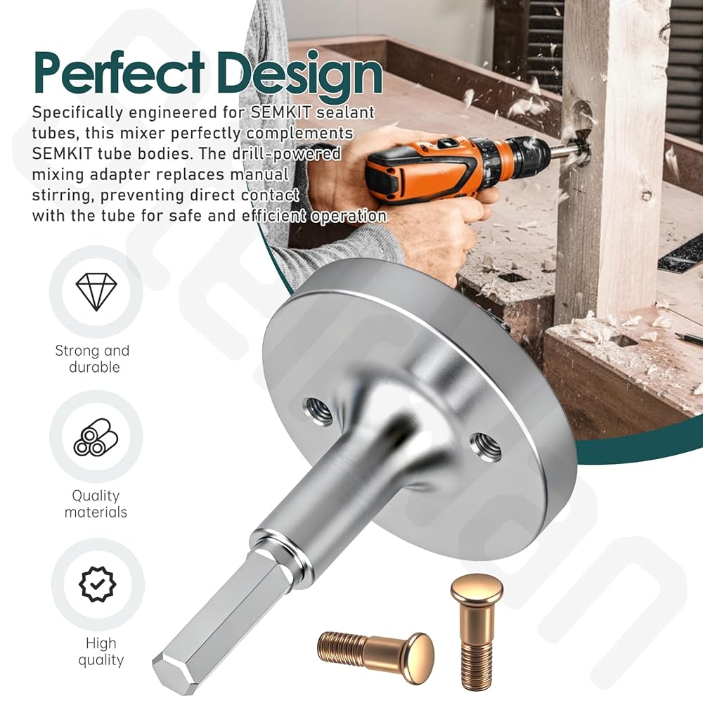 【Perfect Design】: Specifically engineered for SEMKIT sealant tubes, this mixer perfectly complements SEMKIT tube bodies. The drill-powered mixing adapter replaces manual stirring, preventing direct contact with the tube for safe and efficient operation
