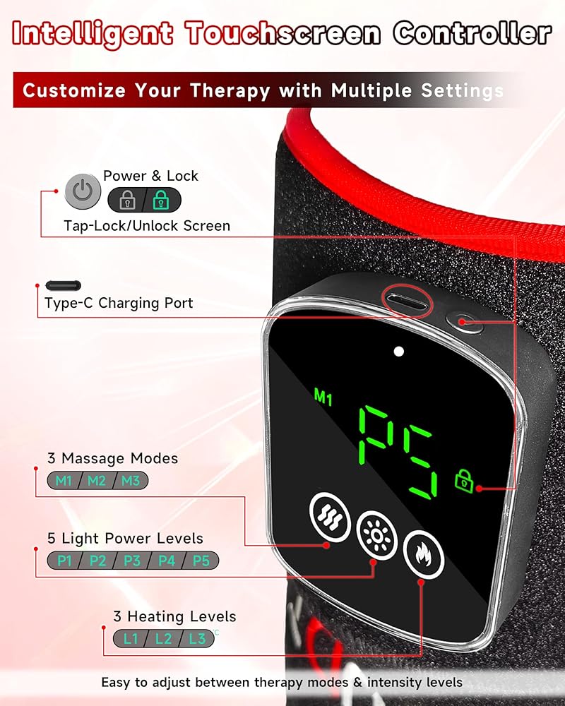 • 𝗣𝗲𝗿𝘀𝗼𝗻𝗮𝗹𝗶𝘇𝗲 𝗬𝗼𝘂𝗿 𝗦𝗵𝗼𝘂𝗹𝗱𝗲𝗿 𝗧𝗵𝗲𝗿𝗮𝗽𝘆 - يتميز بـ 3 أوضاع اهتزاز (M1-M3)، و3 مستويات تسخين (L1-L3)، و5 مستويات طاقة ضوئية (P1–P5) لتوفير الراحة والفعالية المثالية لتتناسب مع احتياجاتك اليومية. يمنع الإغلاق التلقائي لمدة 30 دقيقة الاستخدام الزائد، مما يسمح لك بالاسترخاء التام دون قلق والاستمتاع بتجربة العلاج بالضوء الأحمر.