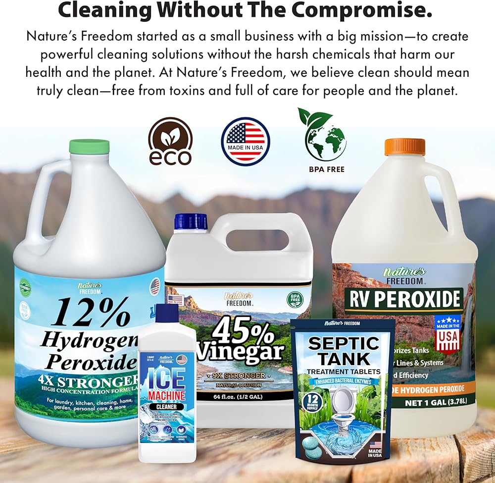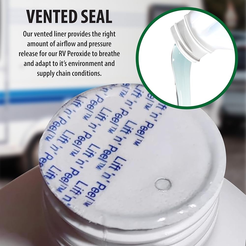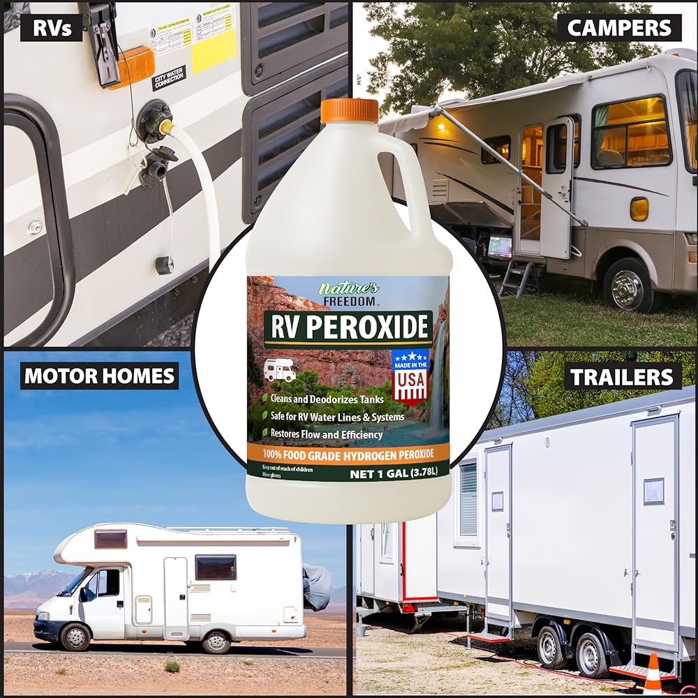 بيروكسيد الهيدروجين من Nature's Freedom RV، ينظف ويزيل الروائح الكريهة من خزانات RV الطازجة والرمادية والأسود، آمن لخطوط المياه والسباكة، ونقاء من الدرجة الغذائية، وقوة مركزة، 1 جالون