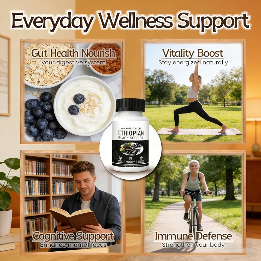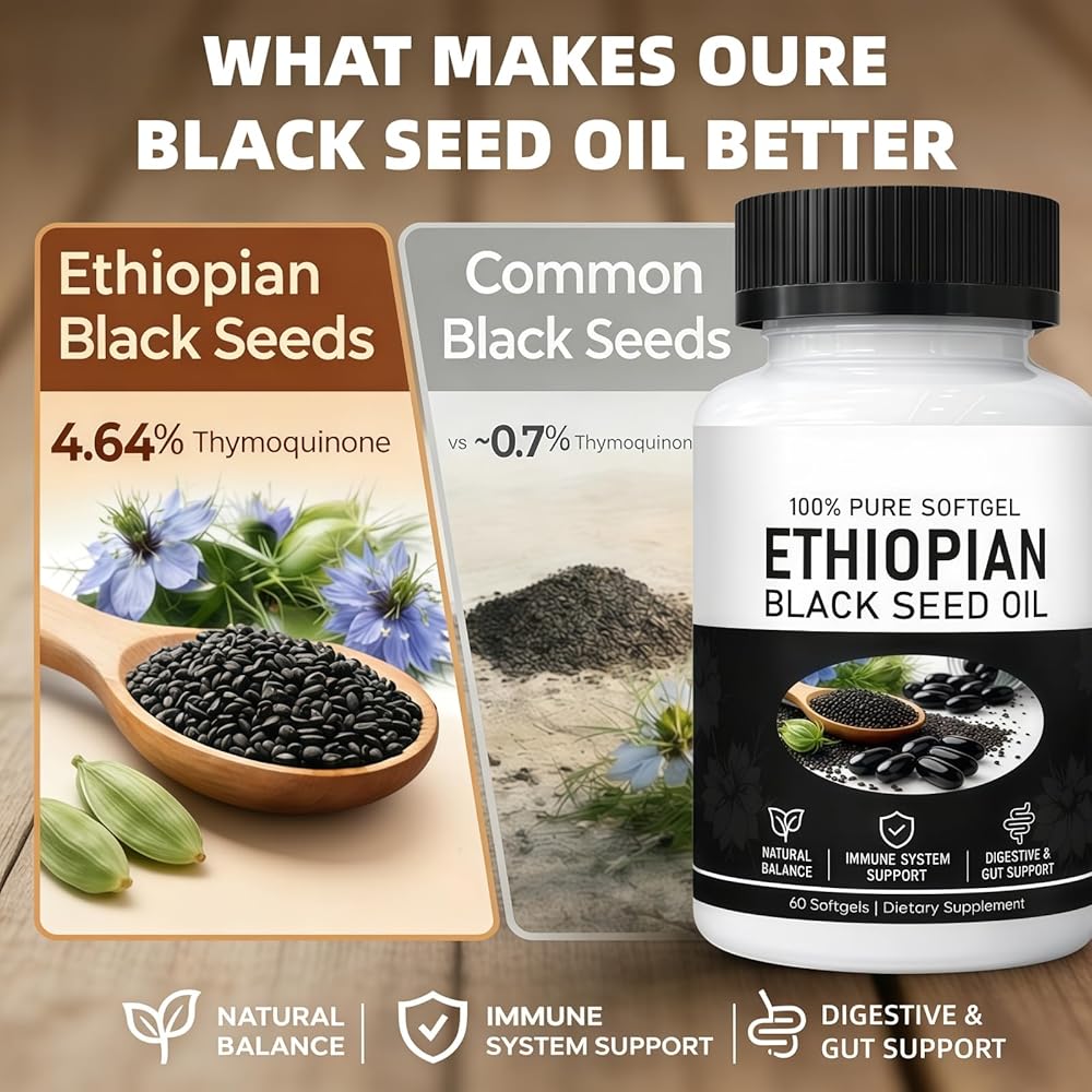 Authentic Ethiopian Highland Sourcing: Sourced exclusively from the pristine Ethiopian highlands, where fertile soil and climate cultivate black seeds with naturally higher concentrations of beneficial compounds, ensuring consistent quality and reliable benefits in every softgel