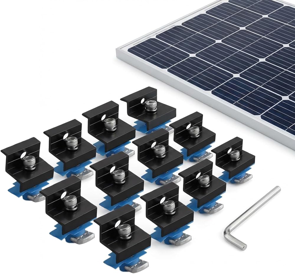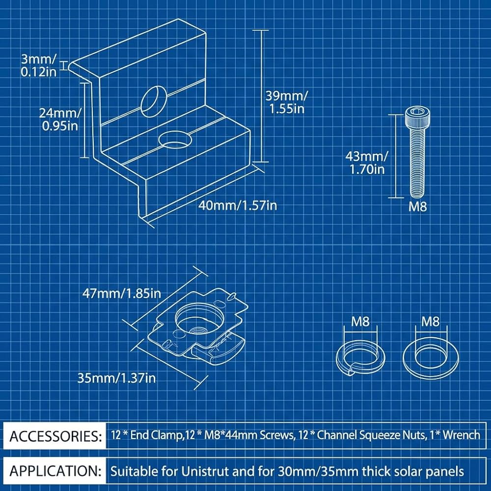 【 Complete Mounting Kit 】 - This set includes 12 end clamps with all necessary hardware for installation. Ample quantity meets various project sizes and replacement needs, providing a reliable all-in-one solution for solar array securing.