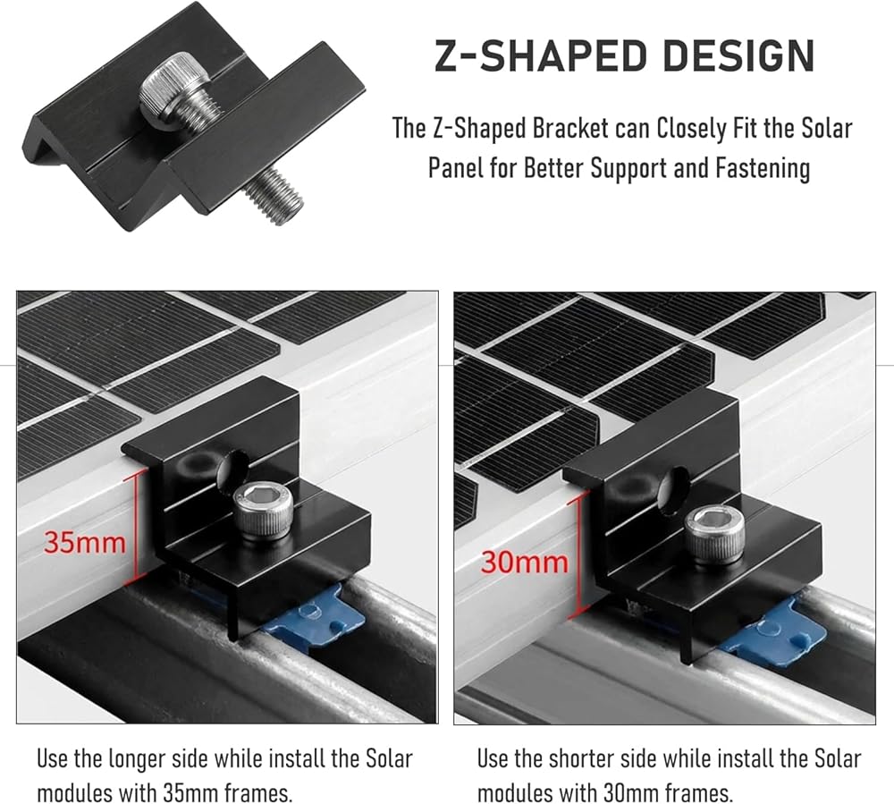 【 Dual-Size Compatibility Design 】 - Features an innovative two-hole design that accommodates both 30mm (1.18") and 35mm (1.38") thick solar panels. Simply choose the longer or shorter end to fit your panel thickness for secure and flexible mounting.