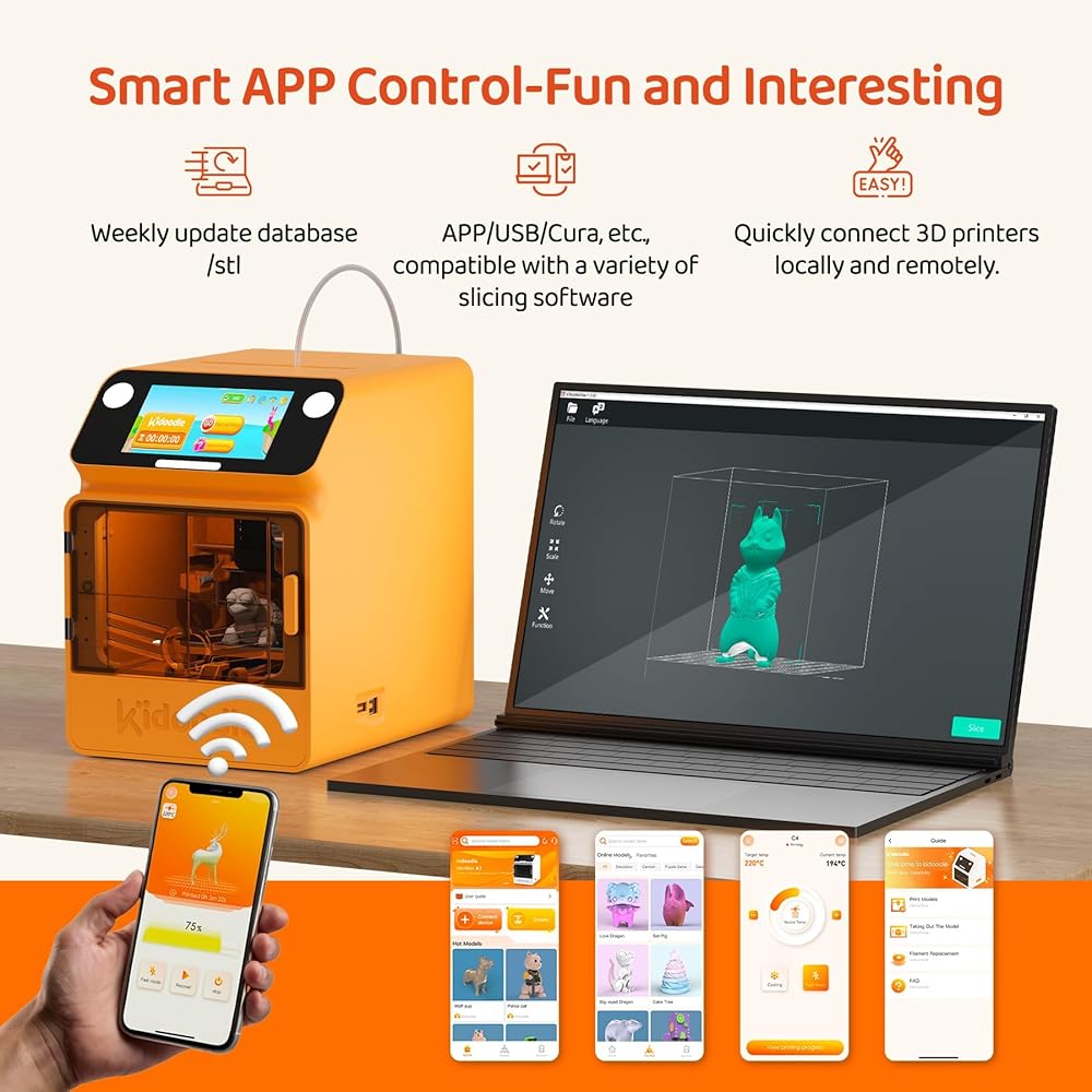 طابعة ثلاثية الأبعاد للأطفال، آمنة للأطفال، طابعة ألعاب ثلاثية الأبعاد، رفيق تعلم العلوم والتكنولوجيا والهندسة والرياضيات، واي فاي والتحكم في التطبيقات، مكتبة ألعاب التحديث الأسبوعي، شاشة تعمل باللمس، تتضمن 4 خيوط PLA للاستخدام المنزلي والمدرسة