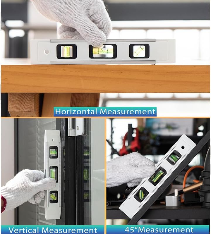 3 DIFFERENT ANGLE - Horizontal, vertical and 45-degree bubble level for measuring