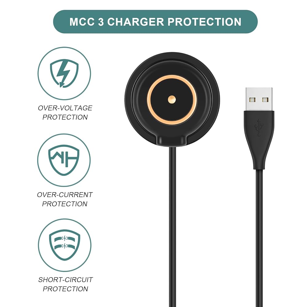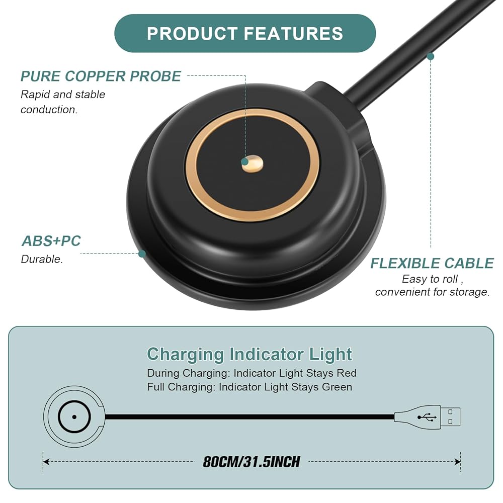 • 【ممتاز وآمن】كابل الشحن مصنوع من سلك نحاسي وبلاستيك متين، والعلبة مصنوعة من سبائك الألومنيوم، وتعمل مثل شاحن OEM. شرائح ذكية مدمجة في الشاحن، توفر أداء شحن ثابت، وتحمي الساعة من التيار الزائد أو الجهد الزائد أو قصر الدائرة.