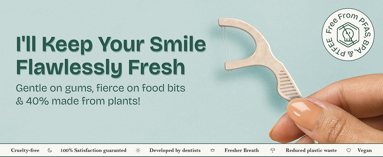 • مكونات نظيفة يمكنك الوثوق بها - مصنوعة بدون مادة BPA أو PFAS أو PTFE، توفر أعواد تنظيف الأسنان هذه تجربة تنظيف الأسنان النظيفة والخالية من الفلورايد والغلوتين والمنعشة. آمن للاستخدام في روتين تنظيف الأسنان للبالغين والأطفال، مما يجعل تنظيف الأسنان اليومي سهلاً وخاليًا من القلق.
