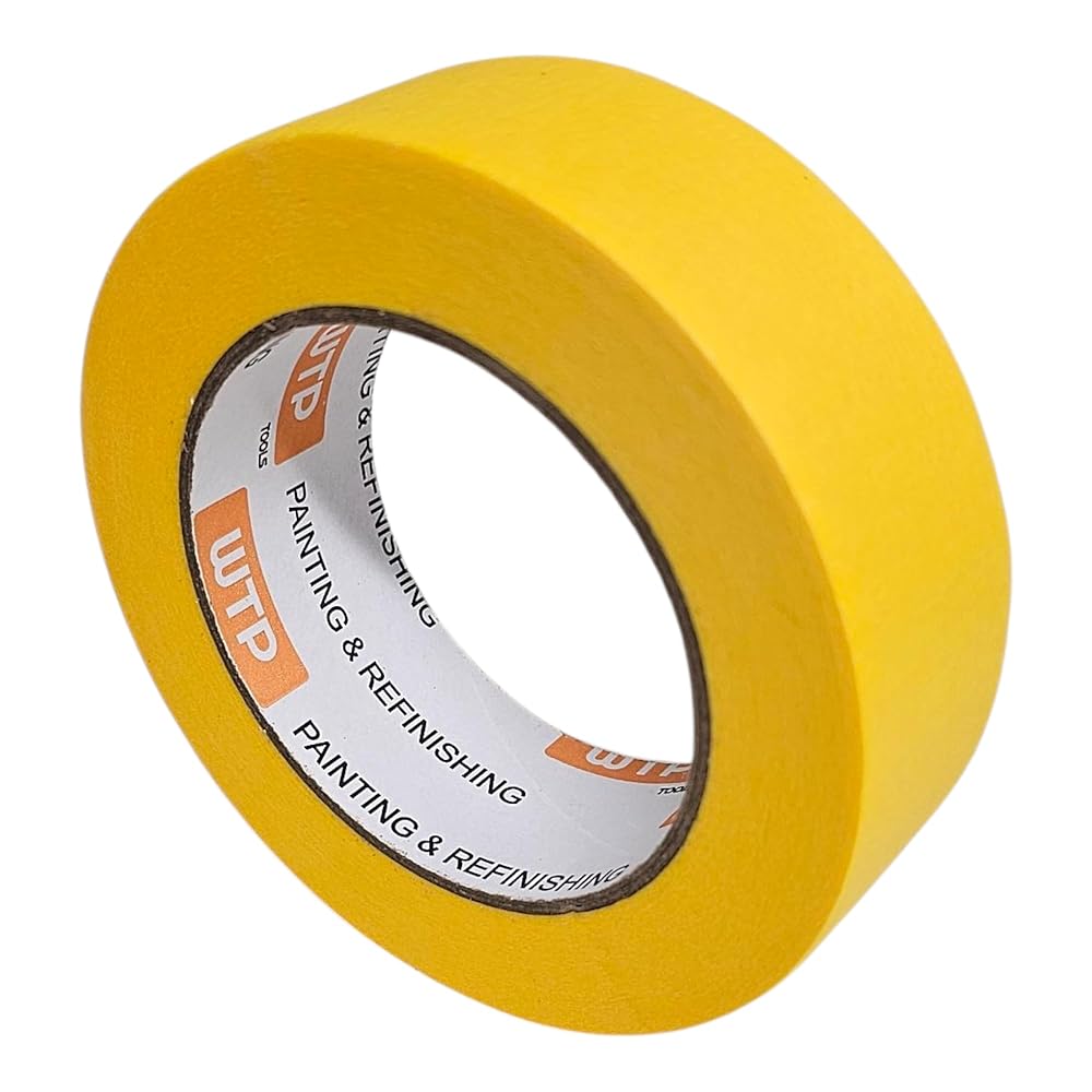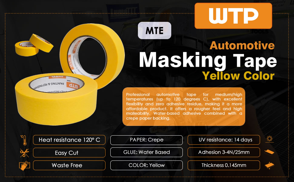 شريط قناع صناعة السيارات MTE36-6 للطلاء وإعادة التشطيب، لون أصفر، عرض 1 1/2 بوصة، طول 55 ياردة، عبوة من 6 قطع - مقاومة لدرجات الحرارة العالية - بدون بقايا