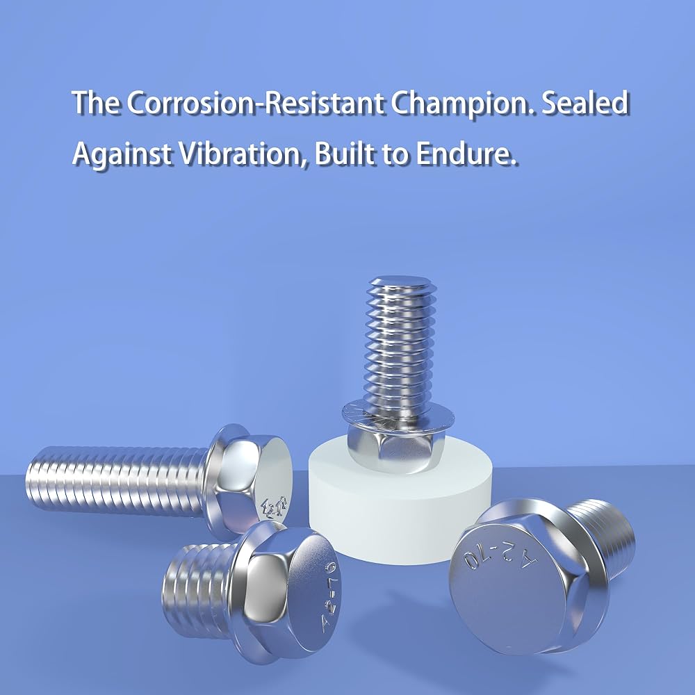 【الفولاذ المقاوم للصدأ 304 الممتاز】 مصنوعة من الفولاذ المقاوم للصدأ 18-8 (304) عالي الجودة، توفر هذه البراغي ذات الحافة مقاومة ممتازة للتآكل والمتانة. مثالي للسيارات والآلات والتطبيقات البحرية والخارجية حيث يكون الصدأ مصدر قلق.