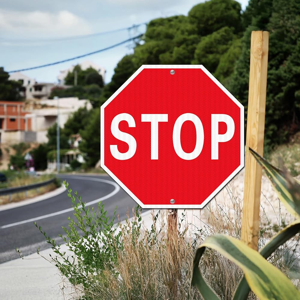 Weather-Resistant and UV Protected: The weather-resistant design and UV protection ensure that this sign withstands harsh elements, maintaining its visibility and quality over time, making it ideal for outdoor use. Compared to other similar signs that fades quickly in the sunlight, Our Stop Sign will not fade or warp.