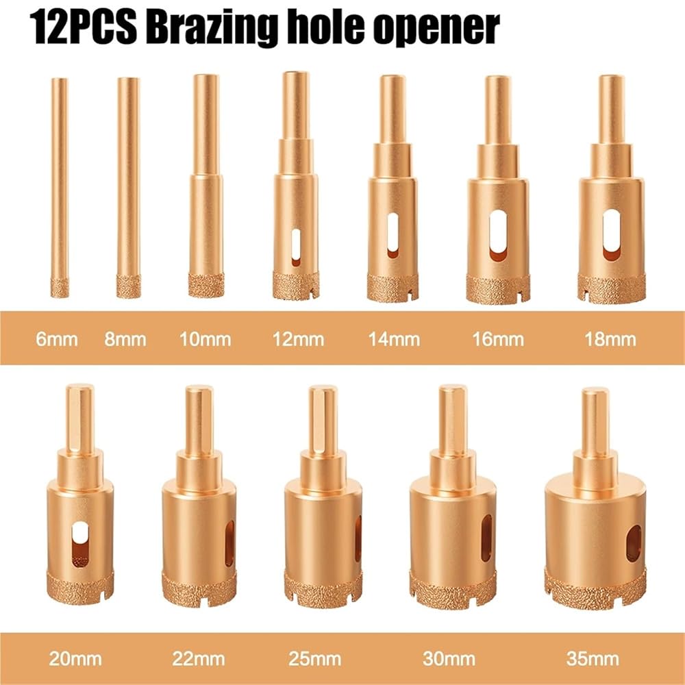 12 قطعة M10 الموضوع النحاس ثقب الماس فتاحة مثقاب الخشب الأساسية لبلاط السيراميك الرخام الجرانيت الطوب البناء ثقب المنشار أدوات