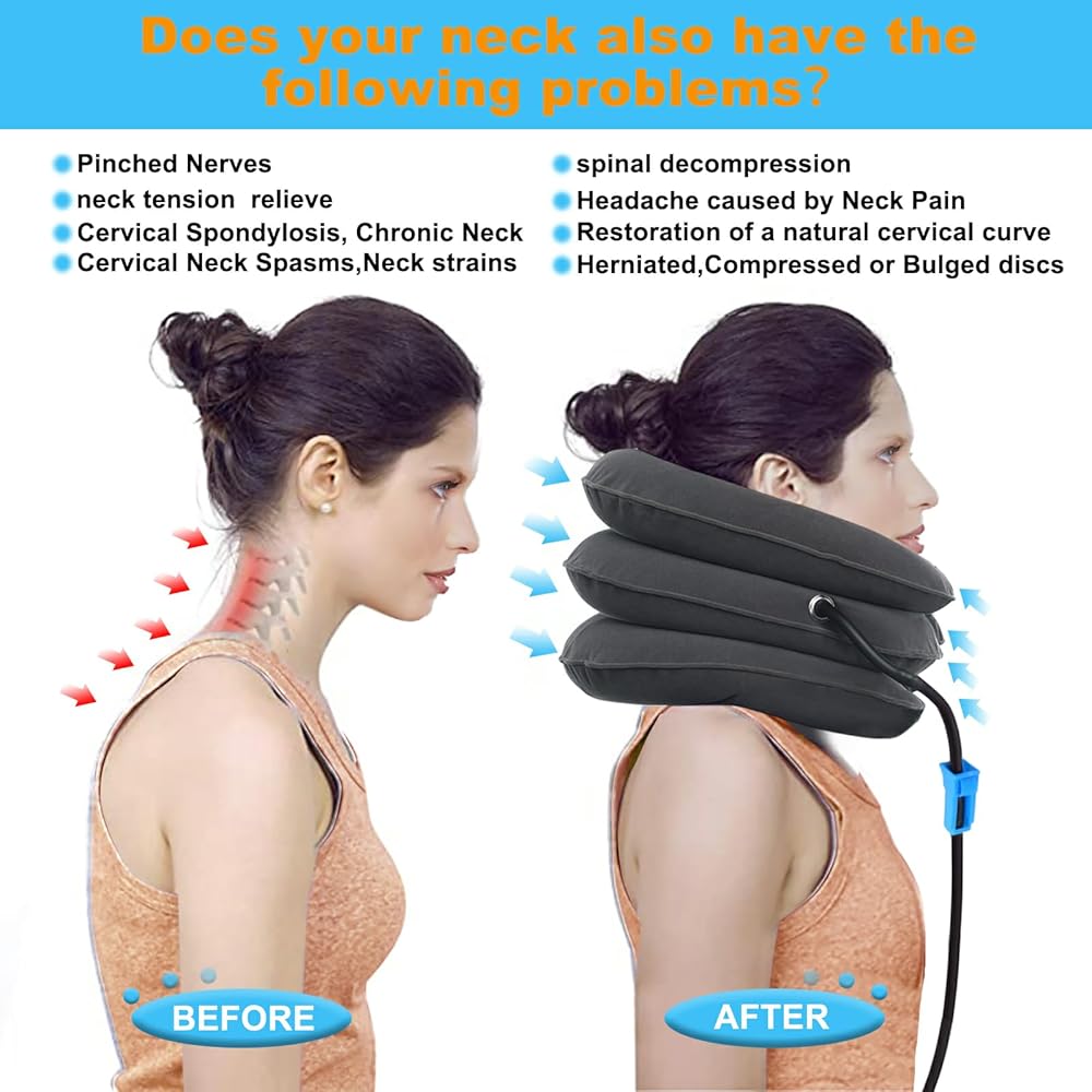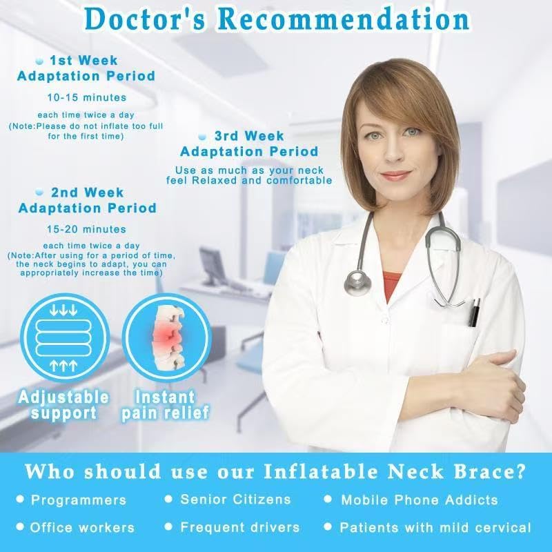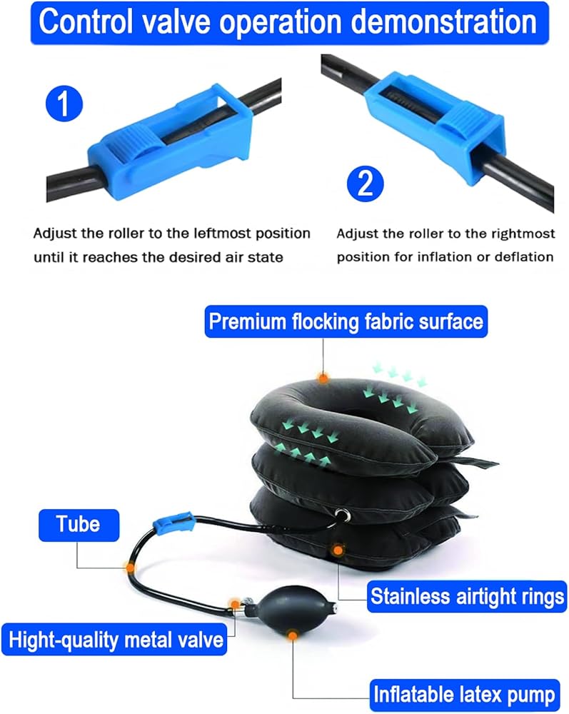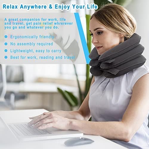 ✅جهاز جر الرقبة العنقي القابل للنفخ - مصمم لتخفيف آلام وتوتر عنق الرحم، يوفر لك جهاز جر الرقبة Siwei دعمًا قابلاً للتعديل للعمود الفقري العنقي، ويساعد على تخفيف الصداع أو التصلب أو الدوخة. بالإضافة إلى ذلك، يمكنه إصلاح وضعية الجلوس غير الصحيحة وتخفيف التعب والإجهاد أثناء العمل. *الحجم: 12 إلى 17 بوصة حول الرقبة*