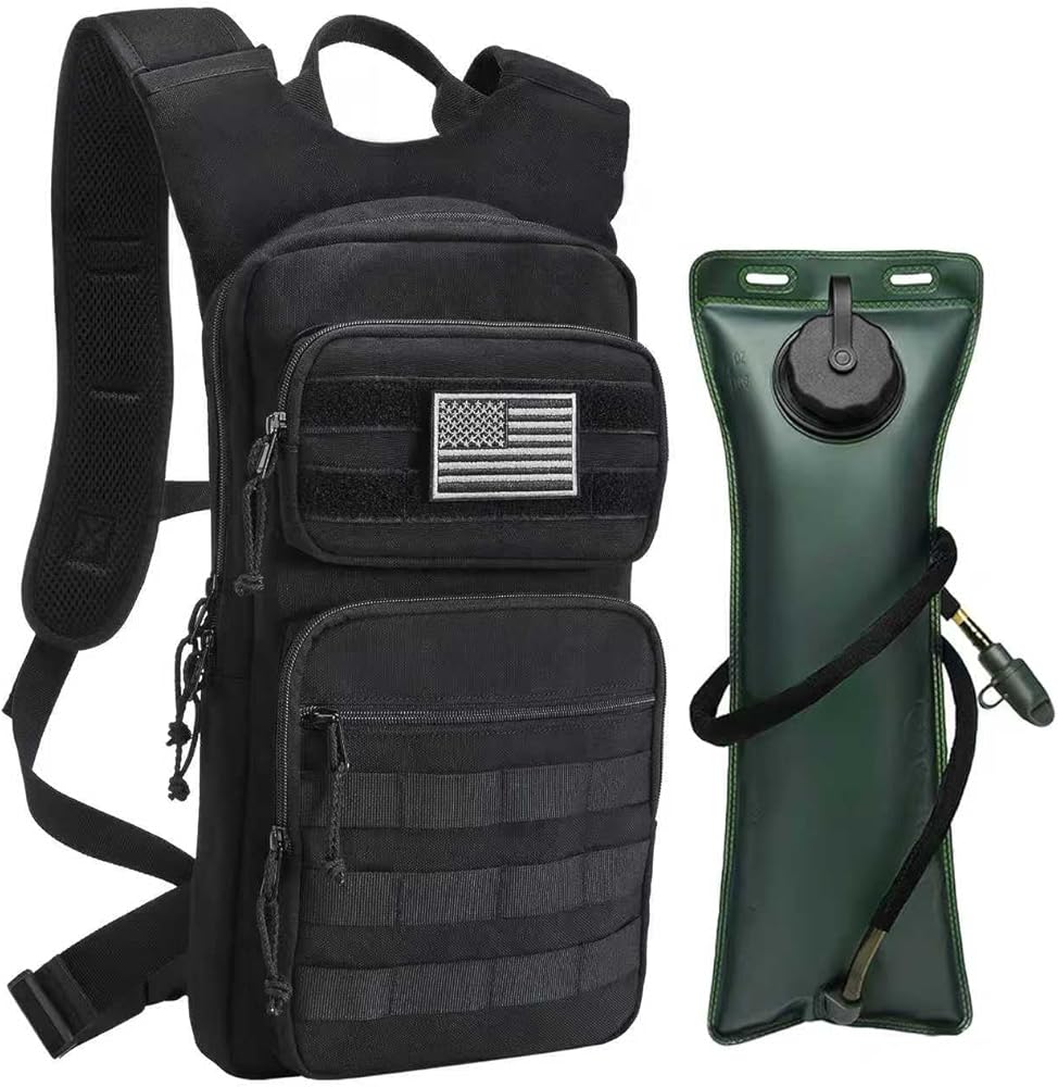• High-quality Material:Water hydration backpack is made of high quality 500D Nylon,with high durability and water-resistant to meet the needs of outdoor adventures.YKK zipper with rope,which is heavy-duty smooth,sturdy materials and anti-theft.The size of tactical hydration backpack :18.5x9.5x3.5inch.it's perfect for outdoor adventures,Mountain biking, trail running and military enthusiasts