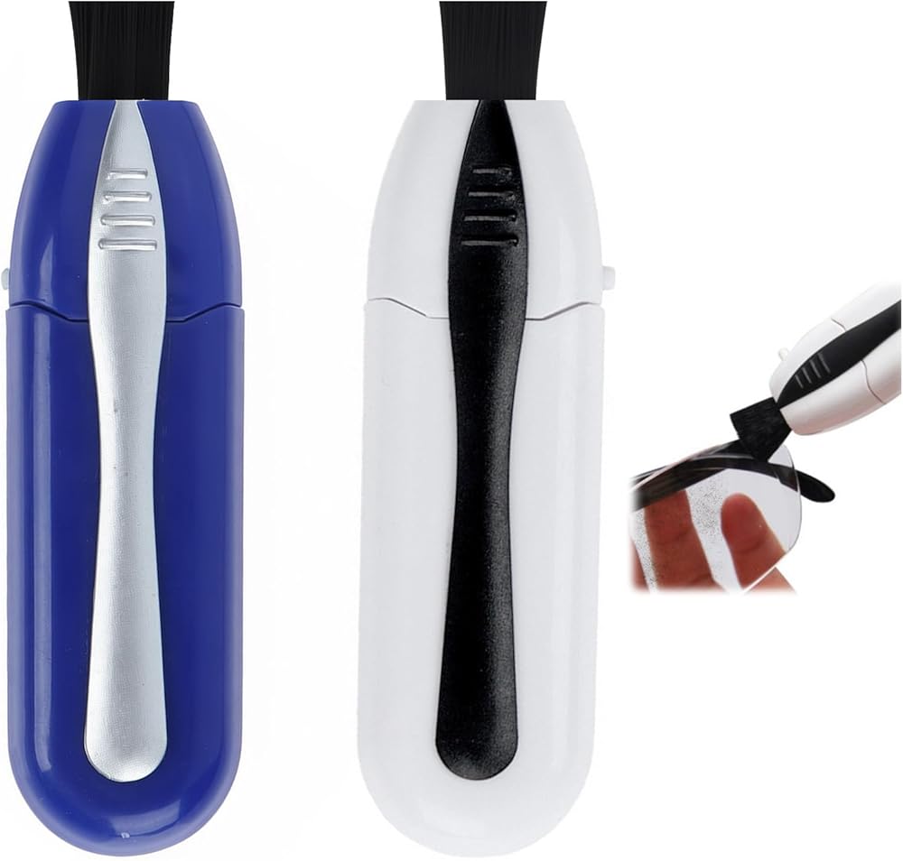 Introducing the 2PCS Portable Eyeglass Cleaning Kit—your go-to solution for hassle-free, effective lens care. Designed for anyone who wears eyeglasses, sunglasses, or reading glasses, this kit blends functionality and convenience to keep lenses clear and spotless in daily life.Each tool in the kit features a dual-action design: a retractable dust brush that tackles loose dust, dirt, or dandruff, and ultra-soft microfiber tips that gently lift grease, fingerprints, and smudges. Unlike harsh options, it leaves no residues or scratches, protecting delicate lens coatings and preserving the clarity of your lenses.Made with high-quality, wear-resistant material, the tools stand up to daily use—resisting drops, scratches, and wear and tear to ensure long-lasting performance. No more replacing flimsy tools frequently; this kit offers durability that saves time and money.At just 5.31 inches x 2.36 inches, the compact size makes the kit incredibly portable. It fits seamlessly into pockets, purses, or backpacks, so you can take it with you to work, on trips, or to school. Caring for your lenses is simple: just brush away loose debris first, then use the microfiber pad to wipe away smudges. This 2-step process minimizes static, reduces future dust attraction, and ensures unobstructed vision whenever you need it.With 2 tools included, the kit covers all your lens care needs—at home, in the office, or on the go. No complicated steps, no harsh elements—just reliable, easy-to-use care for your lenses every day.