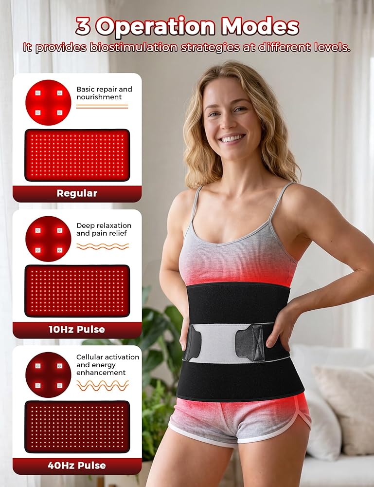 سهل الاستخدام: يوفر 5 مستويات للطاقة و9 إعدادات للمؤقت (10-90 دقيقة). يوصى به 3-4 مرات أسبوعيًا، 20-30 دقيقة لكل منطقة. للحصول على اختراق مثالي للضوء، ارتدي ملابس رقيقة لتعزيز النتائج العلاجية.