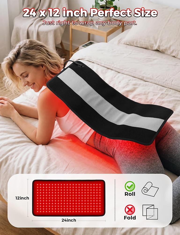 وسادة العلاج بالضوء الأحمر للجسم، 60.96 سم × 30.48 سم، غلاف علاجي عميق بالقرب من الأشعة تحت الحمراء لتخفيف آلام الكتف الخلفي والخصر، حزام العلاج بالضوء الأحمر مع 242 مصباح LED (660 نانومتر و850 نانومتر)، 3 أوضاع/5 طاقة