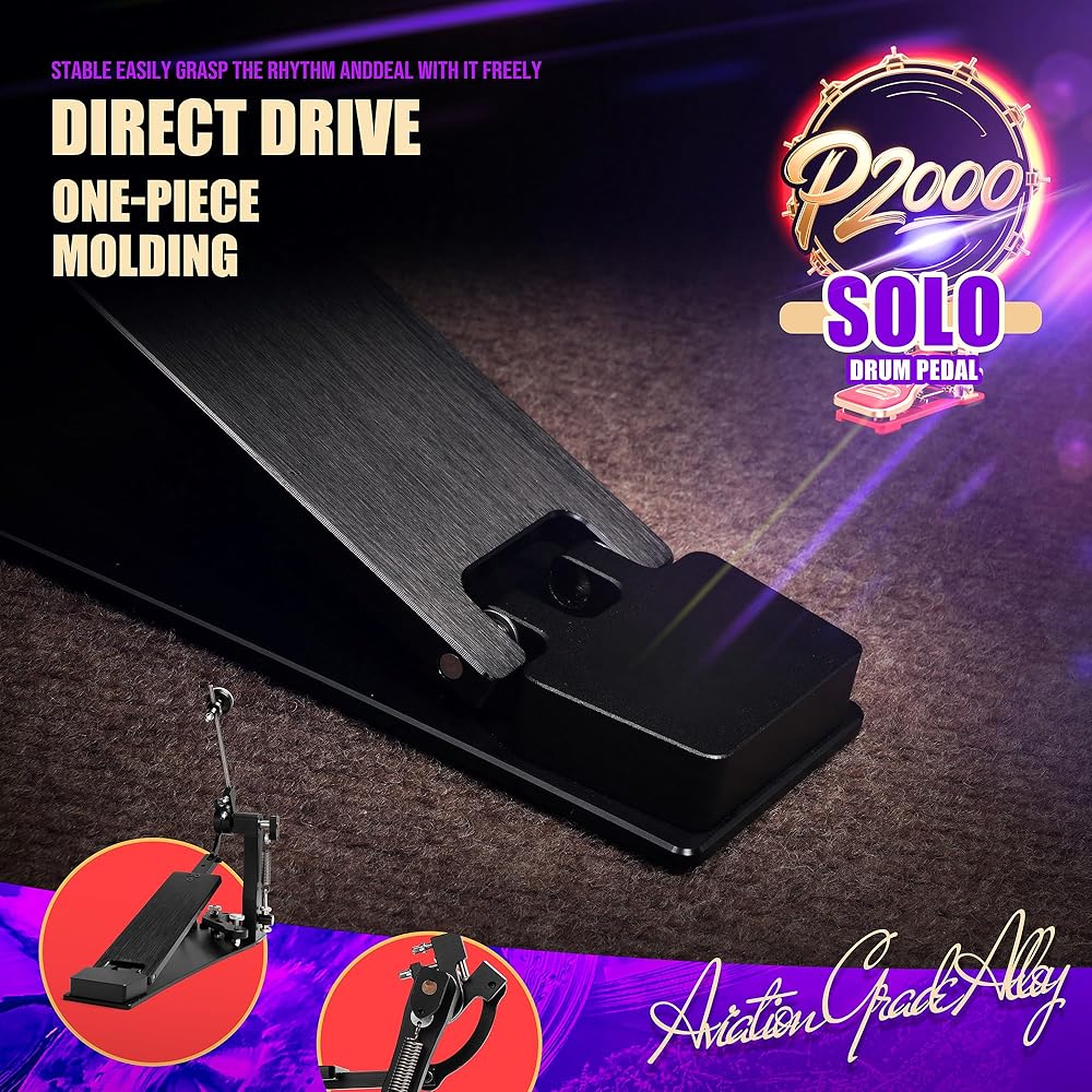 Why should direct drive double pedals always be expensive? The PLADRUBO Direct Drive Double Bass Drum Pedal offers drummers a high-value solution, giving you the smooth feel and fast response of direct drive at a more affordable price. Built with aircraft-grade aluminum, it combines lightweight durability with reliable performance. The direct drive mechanism ensures instant feedback, perfect for rock, metal, or practice sessions. Whether you're trying double pedals for the first time or looking for a budget-friendly upgrade, PLADRUBO delivers professional performance without the high cost.