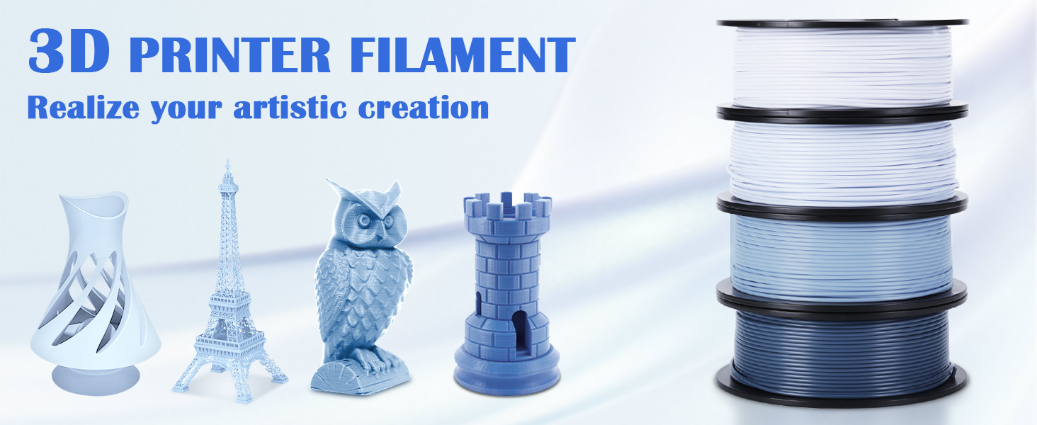 • 【حزمة خيوط PLA】- تحتوي العبوة على 4 ألوان زرقاء متدرجة، 250 جرام/لفة، مختومة بالشفط. حزمة خيوط PLA للطابعة ثلاثية الأبعاد، حزمة خيوط متعددة الألوان يمكن أن تلبي احتياجاتك المختلفة، ويمكن تجميعها حسب الرغبة لتلبية إبداعك في الطباعة ثلاثية الأبعاد
