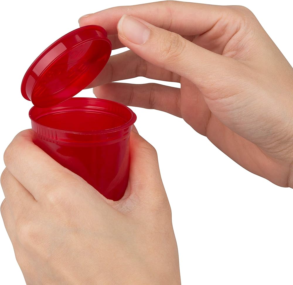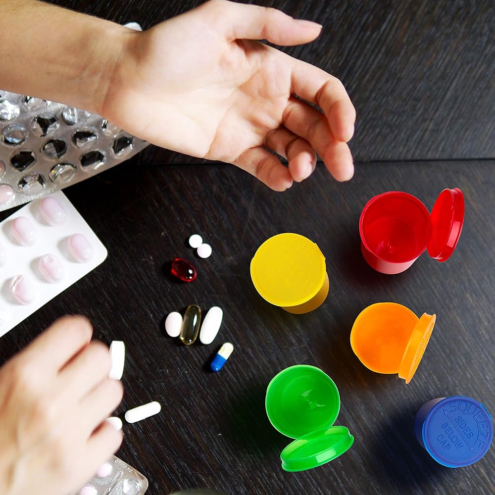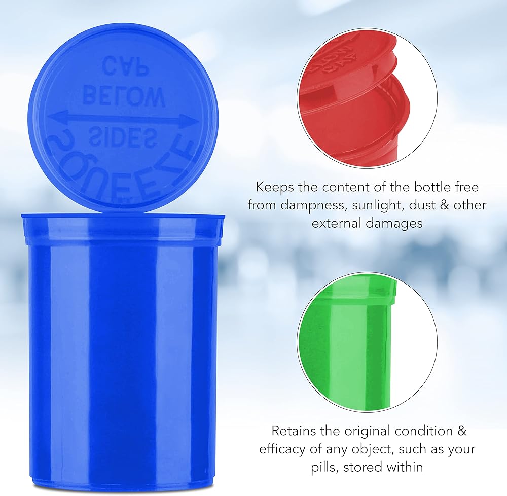 فتحة مقاومة للأطفال - كل زجاجة سعة 30 درامًا نضع اسمنا بمقاس 2.020 × 2.750، وتأتي في مجموعة متنوعة من الألوان (الأخضر والأصفر والأزرق والبرتقالي والأحمر)، وهي مصممة بحيث لا يمكن للرضع والأطفال الصغار فتحها أبدًا. لقد أضفنا أيضًا أغطية مفصلية لتسهيل عملية الفتح بالضغط بيد واحدة كما ينبغي.