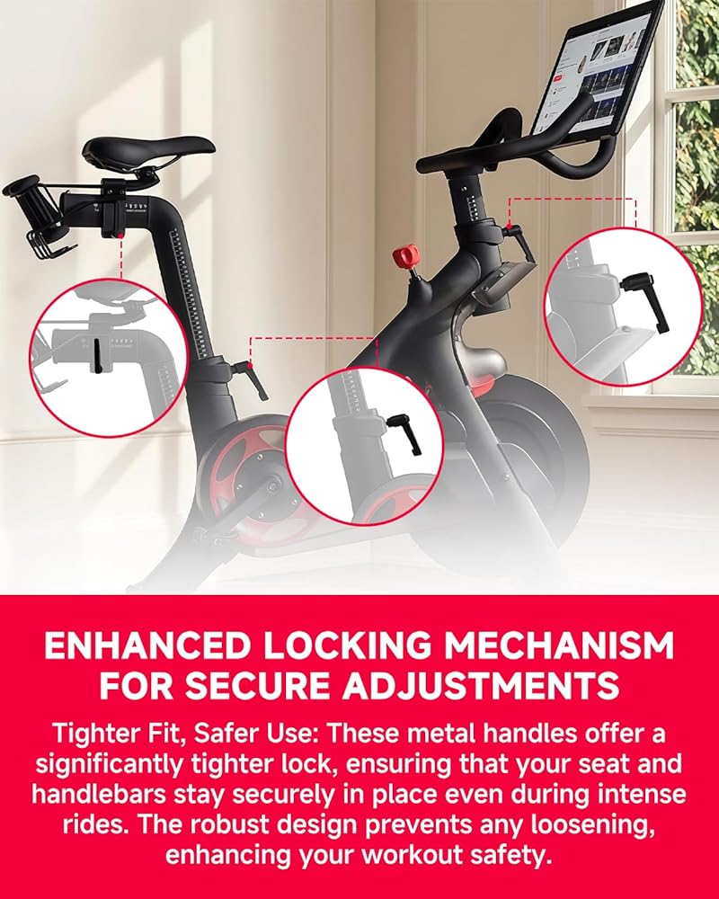 التوافق: متوافق مع عمود مقعد الدراجة Peloton وتعديلات مشبك المقود تتضمن مقبضين كبيرين ومقبض L قياسي واحد غير متوافق مع Peloton Bike Plus نظرًا لتصميم المشبك المختلف، قارن نمط المقبض الأصلي قبل الطلب