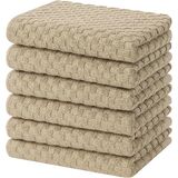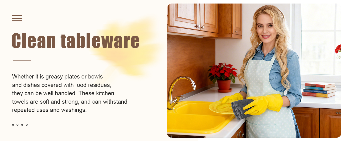 ناعمة وممتصة: مع هيكل وبري مطور ونسيج دوبي، فإن مناشف الأطباق التي يبلغ وزنها 380 جرامًا في المتر المربع ناعمة وعالية الامتصاص. فهي تمتص السوائل وبقع الزيت بشكل فعال دون خدش الأسطح أو إتلاف أدوات المطبخ.