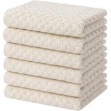 100% قطن مغزول حلقيًا: مصنوع من القطن المغزول حلقيًا الفاخر بنسبة 100%، ويتميز بهيكل وبري فريد من نوعه منسوج في نمط شبكي صغير على شكل أناناس. تتميز مناشف المطبخ هذه بأنها ناعمة بشكل استثنائي وتدوم طويلاً، وتحتفظ بشكلها ولونها حتى بعد عدة غسلات.