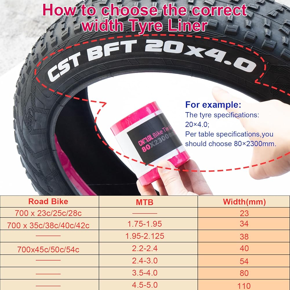 • مقاسات الإطارات المتوافقة: بطانة الإطارات 7 عرض: 23 مم، 34 مم، 38 مم، 40 مم، 54 مم، 80 مم، 110 مم، بطانة إطارات الدراجة المناسبة لمعظم الطرق/الحصى 700 × 23 سي، 700 × 25 سي، 700 × 28 سي، 700 × 30 سي، 700 × 35 سي، 700 × 38 سي، 700 × 40c، 700 x 45c، 700 x54c؛ متوافق مع بطانات الإطارات 16 18 20 24 26 27.5 28 29 بوصة × 1.75-1.95/1.95-2.125/2.125-2.40/2.3/2.4-3.0/3.0-3.5/3.5-4.0/4.5-5.0 Mtb/bmx/e-bike/Fat Bike/Cruiser شريط حماية الإطارات العريضة. اختر مواصفات الدراجة التي تناسبك. (تعليمات مفصلة مرفقة بالشكل)