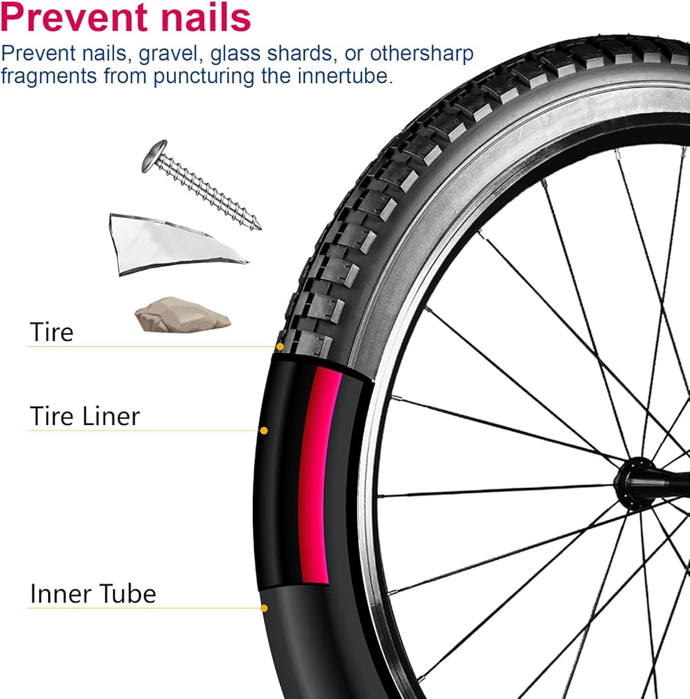 بطانة إطار الدراجة ذاتية اللصق، دراجة جبلية/طريق، واقي مسطح للثقب، حماية مضادة للثقب لـ 16 20 24 26 27.5 29 x1.75/1.95/2.125/2.4/3/4/5 MTB ebike 700c إطار سميك
