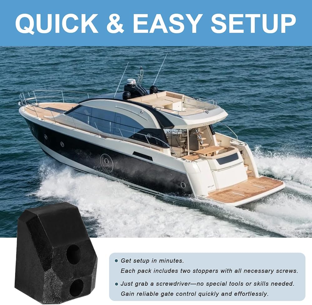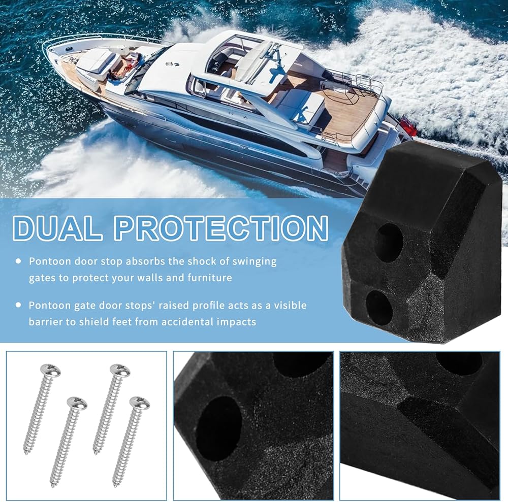 Comprehensive All-in-One Kit: Your purchase delivers complete readiness. The kit includes two (2) expertly molded pontoon boat gate stops and all necessary mounting hardware: #8 screws.