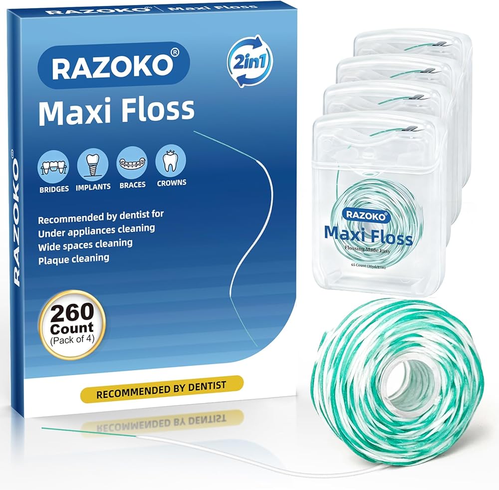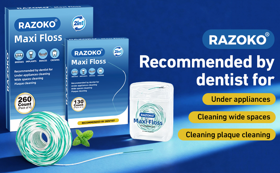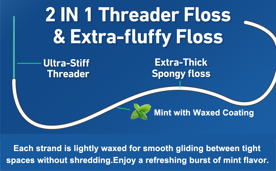 خيط تنظيف الأسنان 2 في 1 للمناطق التي يصعب الوصول إليها - كل خصلة تم قياسها مسبقًا تجمع بين خيط تنظيف الأسنان المرن وخيط تنظيف الأسنان الناعم في آن واحد. ينزلق بسهولة تحت الأقواس والجسور والمزروعات والمثبتات الدائمة لتلبية احتياجات تنظيف الفم اليومية.