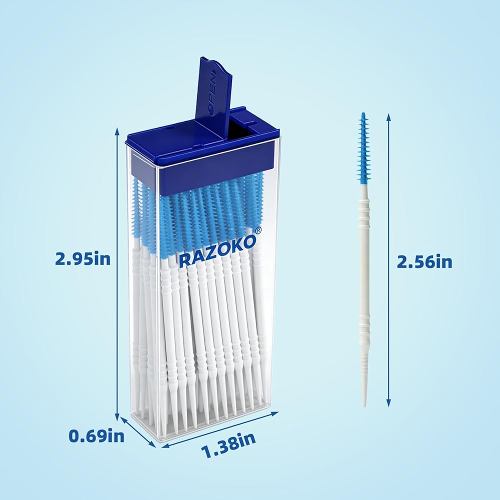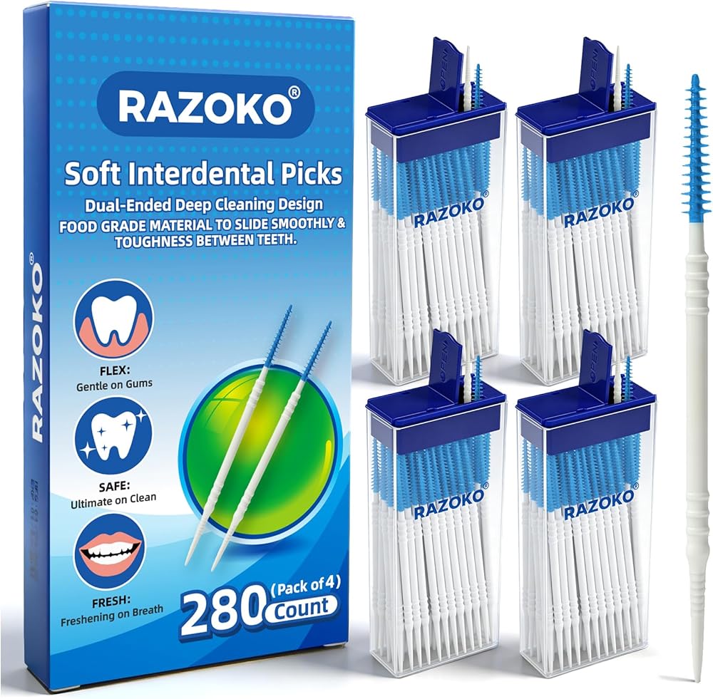 فرش أسنان من السيليكون الناعم من RAZOKO وأعواد أسنان، أعواد أسنان مزدوجة الأطراف للاستعمال مرة واحدة، عدد 280، لطيفة على اللثة، مثالية للأقواس والجسور والمزروعات والحقيبة الصحية المحمولة