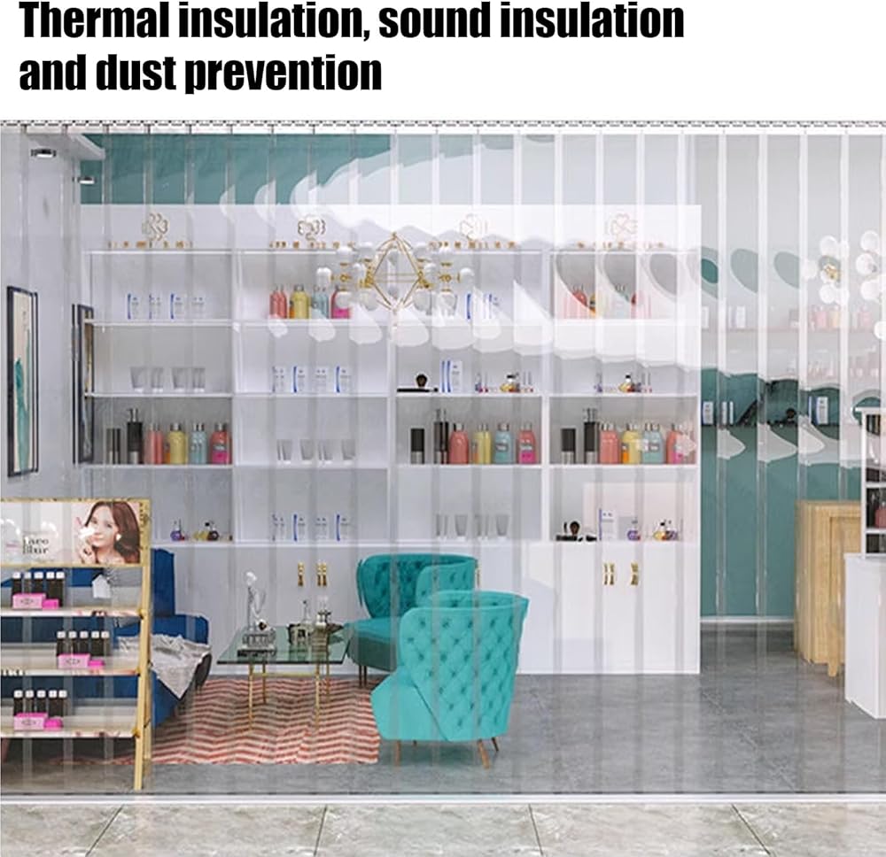 Introducing our premium PVC strip curtain, designed to enhance your living or working space while providing practical benefits. Whether you're looking to separate areas in your home, maintain temperature control, or reduce noise, our PVC door curtain is the ideal solution. Crafted from high-quality, elastic PVC material, this transparent partition curtain offers 99% transparency, allowing natural light to flow while effectively managing air and sound. With a waterproof index of 100%, it's perfect for both indoor and outdoor applications. The installation is straightforward: just follow our simple four-step guide to secure it in place, ensuring a snug fit that won't twist or break over time. Available in customizable widths ranging from 75cm to 150cm and lengths from 190cm to 280cm, you can easily tailor the size to meet your specific needs. Each strip is 18 cm wide, with a convenient overlap to ensure complete coverage. Whether you need a single curtain or multiple strips for wider doors, you can calculate the required number with ease—simply divide your door width by 15. Our PVC strip curtain is not only easy to clean with just soap and water, but it's also environmentally friendly, scratch-resistant, and anti-static, adding both functionality and style to your space. Transform your environment with a solution that combines durability and elegance. Before ordering, please measure your door to ensure a perfect fit. Note that all dimensions may vary slightly by 1-3cm, which can typically be adjusted during installation without affecting performance. Elevate your space with our versatile PVC strip curtain today!