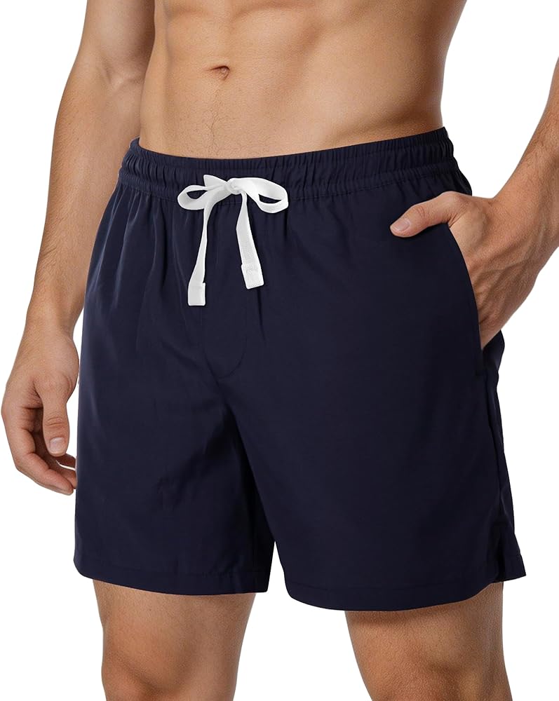 【بطانة ضغط 2 في 1】 سروال سباحة مع بطانة، وحزام خصر مرن مع تصميم برباط، وجيبان جانبيان عميقان يحملان الضروريات الصغيرة بأمان.